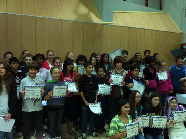 Just expect that you will see an awards ceremony post about 4 times a year as it seems the girls get such good grades that they are at least on the High Honors (3.5-3.99 GPA, Grade Point Average, only 1 or 2 B's) or, as in Xoe's case this year, the Principal's List (4.0 GPA, or all A's). Xanthe would have earned a place on this List too but one of her teachers didn't grade an assignment in time that she needed to fix, so by the time he gave it back to her she didn't have time to fix it before the end of the quarter. (She was up until midnight trying to fix it and in tears... I finally told her to go to bed that it wasn't worth it.)